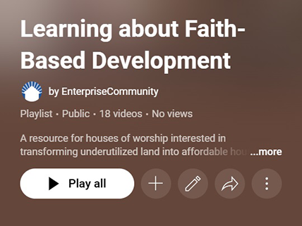 This playlist of educational videos is intended for houses of worship interested in transforming underutilized land into affordable housing and/or community facilities.