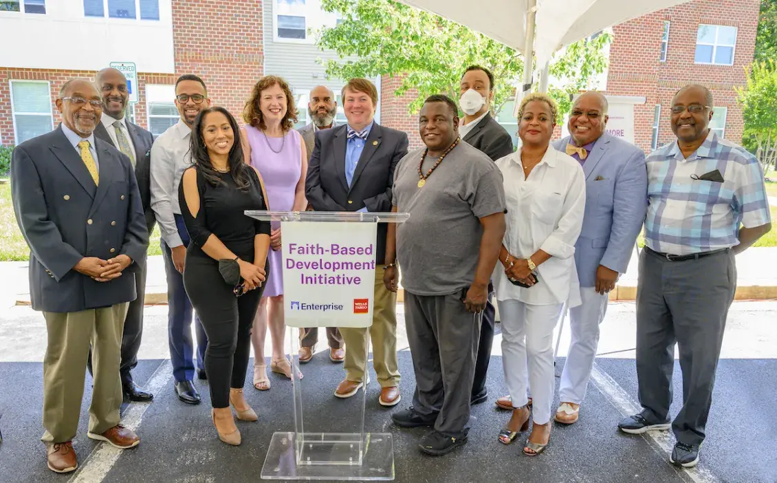 BALTIMORE (July 14, 2022) – Today, with city officials and faith leaders present, Enterprise Community Partners (Enterprise) announced an expansion of its Faith-Based Development InitiativeSM (FBDI) in Baltimore which helps houses of worship convert underutilized land into affordable homes. The program, which is supported by $500,000 in grant funding from the Wells Fargo Foundation, will provide training, technical assistance and predevelopment grants to 12 houses of worship working to address the affordable housing shortage in their communities.